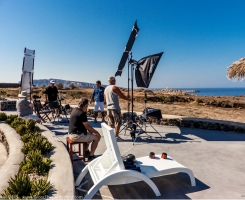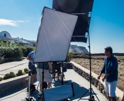 Larry: Wow. That is a hard question to answer, as there were so many things! I loved the locations where we shot. Santorini is essentially a giant mountain of soft white reflectors sitting on the side of a volcanic crater surrounded by the ocean. The dominate colors are white and blue. That palette, combined with the super organic flow of the architecture and the unique feel of